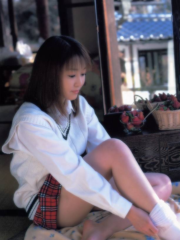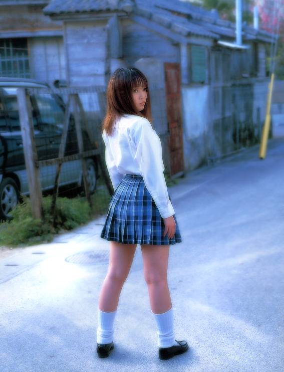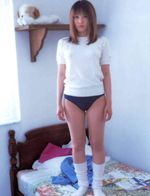 Pale and shy Japanese teen Miko Hayama bashfully shows off her nude body.