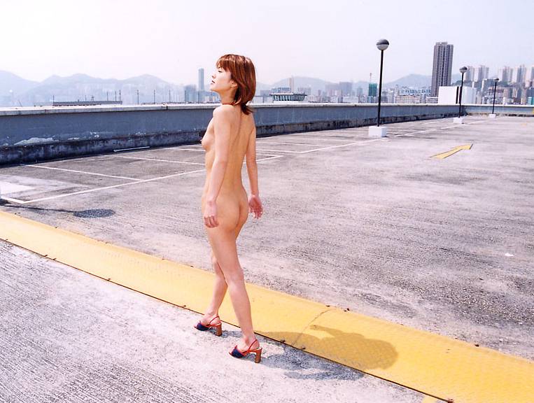 Japanese AV star of yesteryear Madoka Ozawa shows her slim, petite body outside without a care in the world.